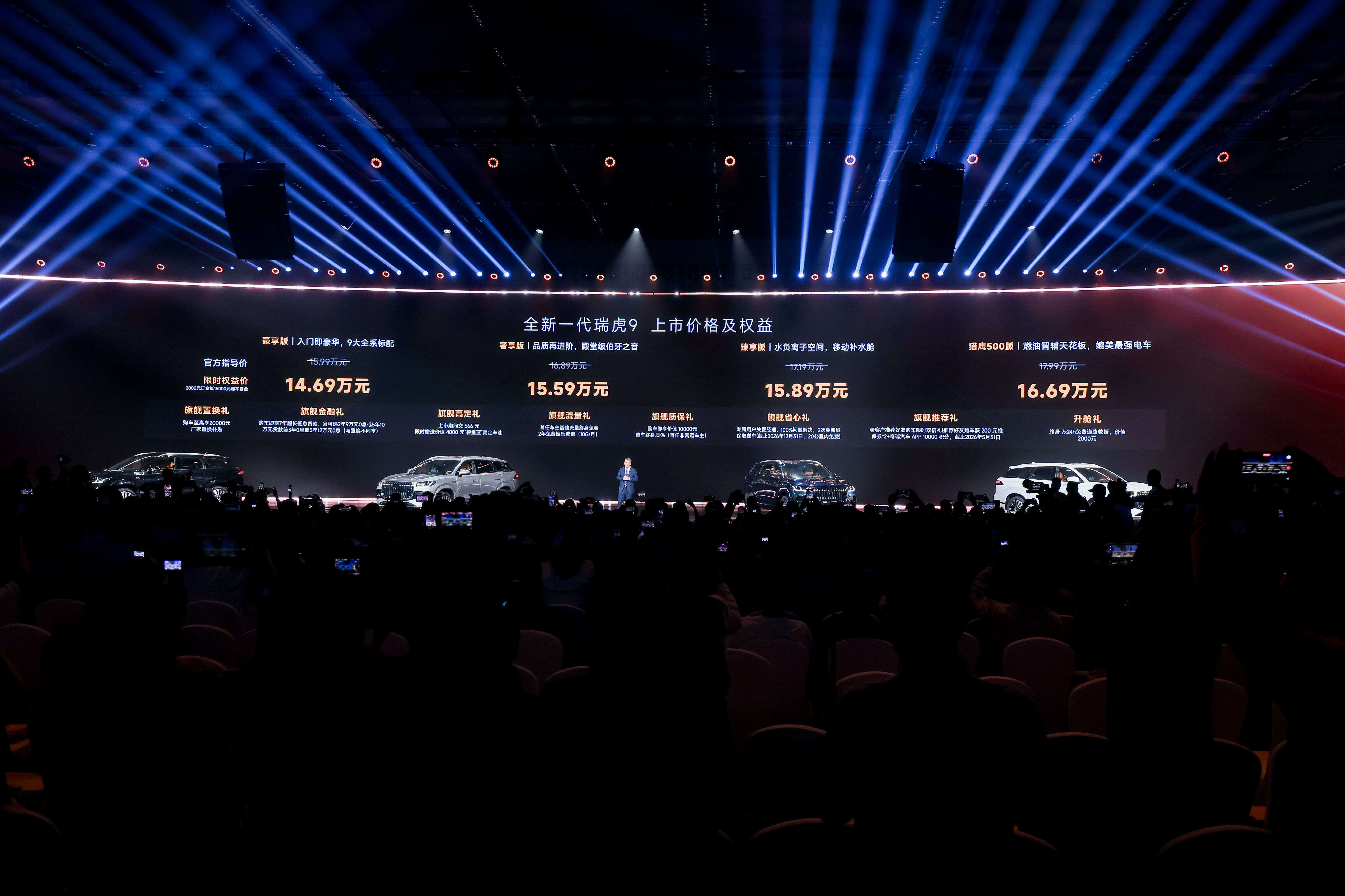 日前,奇瑞新款瑞虎9在北京正式上市,新车共推出4款车型,售价15.99-17.99万元,限时权益价14.69-16.69万元。